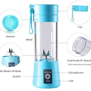Batidora Licuadora Almalux® portátil – para batidos y smoothies – 380 ml con seis cuchillas