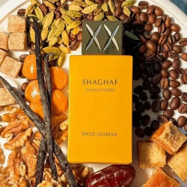 Shaghaf Vanilla Toffee de Swiss Arabian es un Perfume Árabe 100% Original, diseñado para quienes aman la elegancia de los aromas orientales con un toque dulce y sofisticado. Este Eau de Parfum envuelve los sentidos en una combinación irresistible de vainilla, caramelo y maderas exóticas, creando una fragancia cálida, sensual y completamente adictiva.