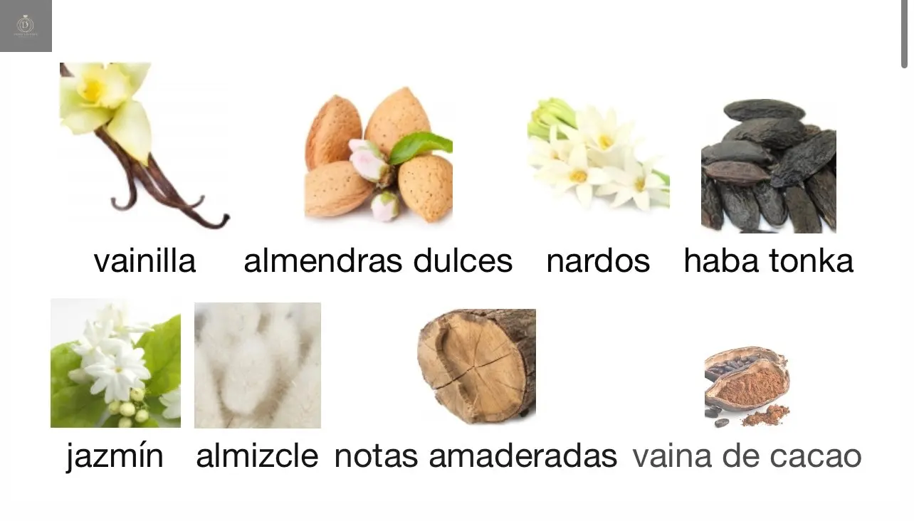 La fragancia cálida y sensual evoca las notas de corazón, donde nuez moscada, geranio, azafrán, loto azul, orégano y canela se combinan en un haz aromático que evoca una excitante sensación de romance y misterio.